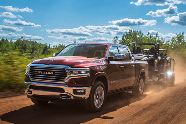 The Ram 1500's exterior design combines functionality with sleek aesthetics. This truck offers optimal rigidity and durability and is constructed with an advanced lightweight ladder-type frame made of high-strength steel. The front suspension features a solid coil over shock design, ensuring exceptional performance under various loads. The rear suspension, composed of a five-link progressive-rate coil, improves control and stability while towing or carrying heavy loads.